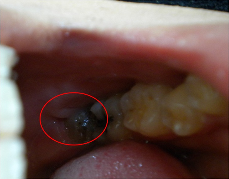 分かりにくいが、親知らず 親知らずがなくなって、 骨もいっしょに